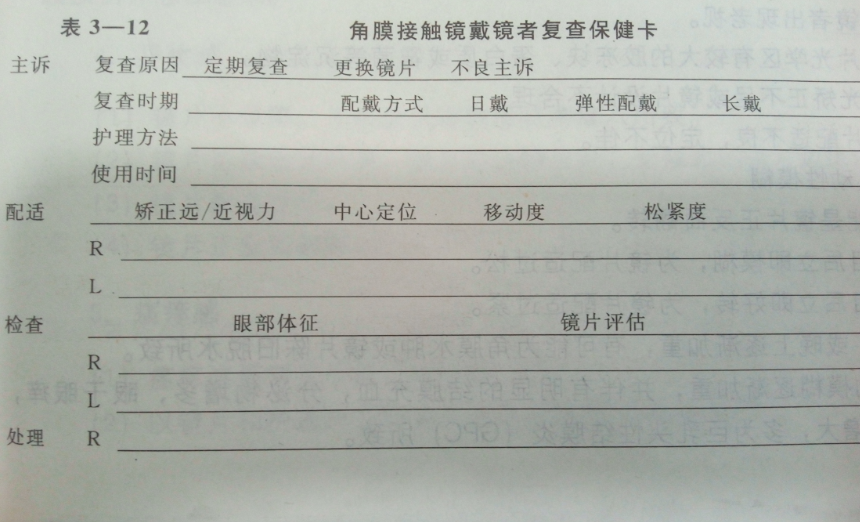 预约下次复查时间。将复查所得结果填入戴镜者保健卡的副页(见表3-21)。